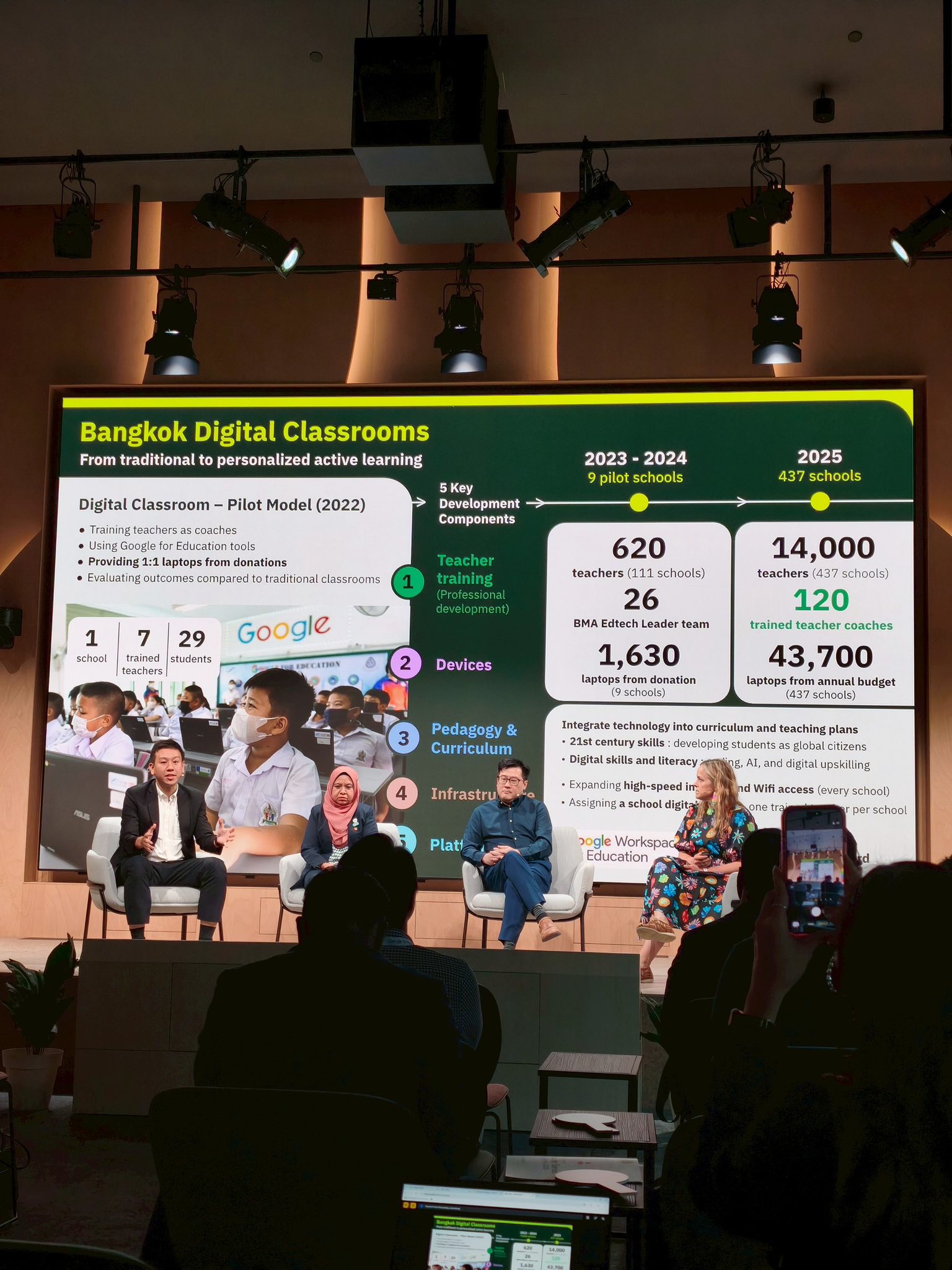 โดยนำเสนอทิศทางการขับเคลื่อนห้องเรียนดิจิทัล และนโยบายใช้เทคโนโลยีเพื่อ “ลดช่องว่างความเหลื่อมล้ำ เพิ่มโอกาสการเรียนรู้” ให้กับนักเรียนในสังกัดกรุงเทพมหานคร