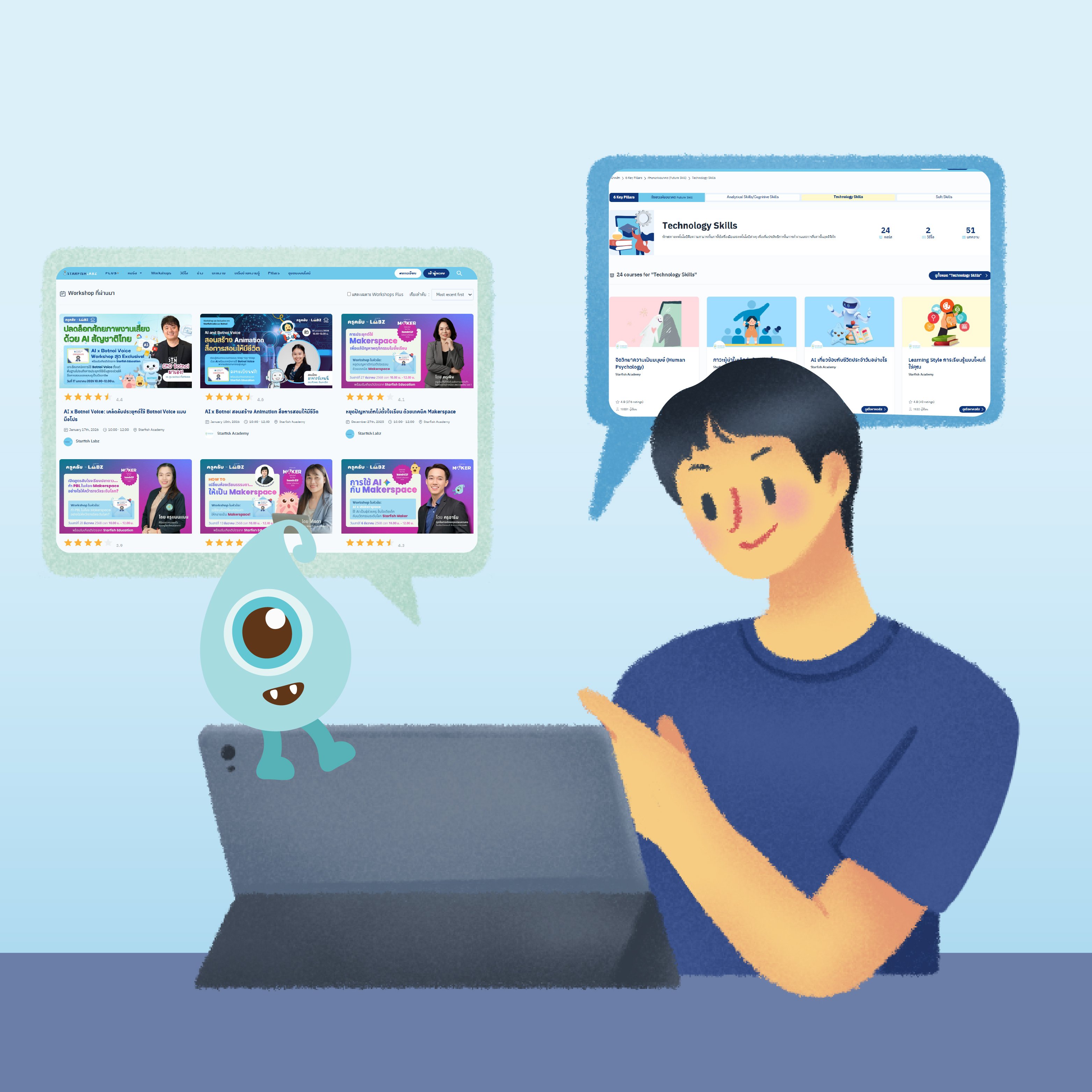 การสร้าง Growth Mindset และการเรียนรู้ทักษะใหม่ๆ เช่น ทักษะนอกห้องเรียน และการพัฒนาตัวเองผ่านแหล่งเรียนรู้ที่มีคุณภาพอย่าง Starfish Labz รวมถึงพื้นที่อื่นๆ ยังสามารถช่วยให้เราสามารถเดินไปข้างหน้าได้อย่างมั่นใจ พร้อมต่อโอกาสใหม่ๆ สำหรับตัวเรานั่นเอง